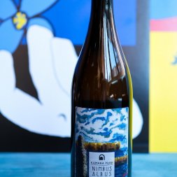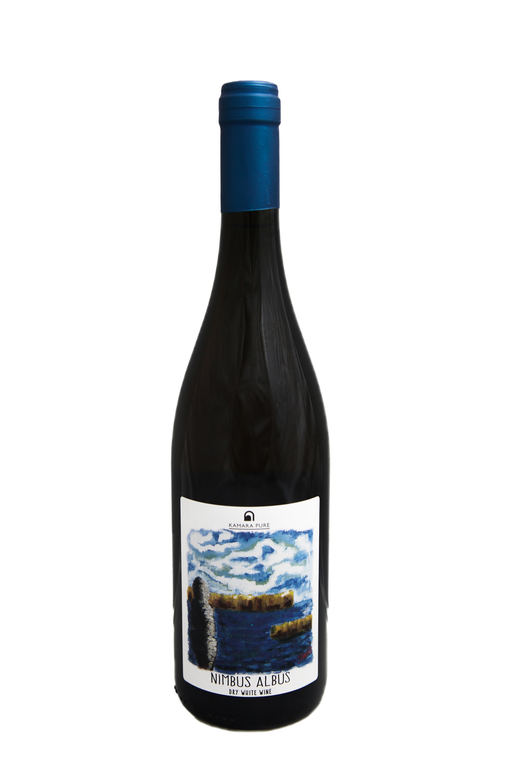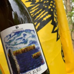 History of this label: The label is a painting of our lakes during a cloudy day, as Nimbus means cloud and Albus white. The Nimbus series are natural non filtered wines, giving their hazy hue and an uplifting but soft and round feeling, kind of what drinking a cloud would taste like.